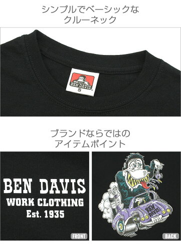 BEN DAVIS ベンデイビス tシャツ メンズ ブランド 半袖tシャツ 大きいサイズ メンズ tシャツ アメカジ tシャツ メンズ バックプリント ロゴt ブランド 黒 白 ブラック ホワイト XL XXL LL 2L 3L (USAモデル)【COP】