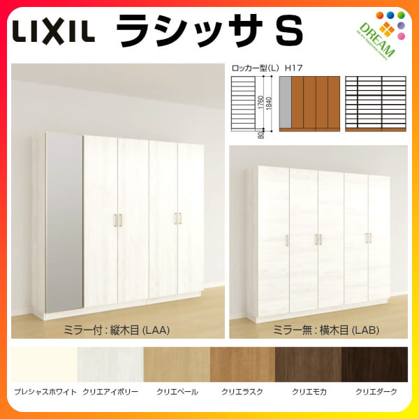 下駄箱 シューズボックス 玄関収納 リクシル ラシッサS ロッカー型(L) H17 間口2000×高さ1840×奥行360mm フロート/台輪納まり 扉付き 組立式 靴箱 リフォーム DIY